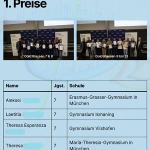 - Chemie zum Reinschnuppern – ein Tag im „Liebig-Labyrinth“Am 6. Februar besuchten die beiden Chemie-Grundkurse sowie der Leistungskurs der Jahrgangsstufe 12 den Hochschul-Infotag der Fakultät für Chemie und Pharmazie an der LMU München. Treffpunkt war das Foyer vor… Chemie zum Reinschnuppern – ein Tag im „Liebig-Labyrinth“ weiterlesen