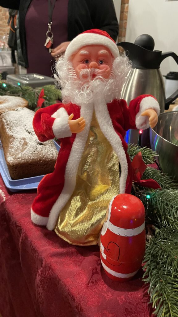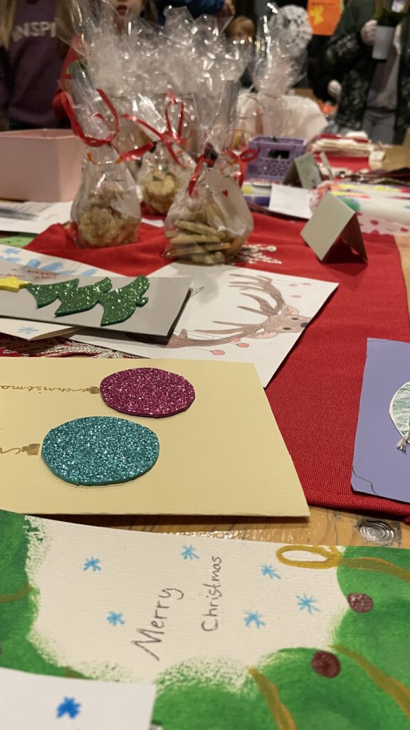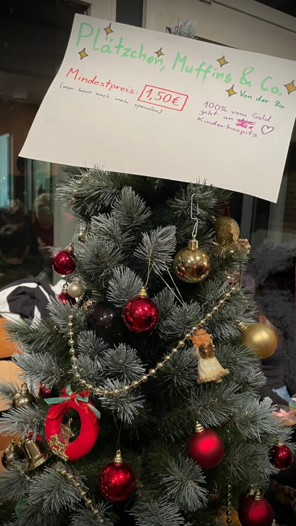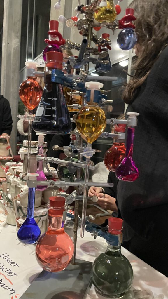 Weihnachtlich bunt und betriebsam ging es direkt im Anschluss beim Basar im A-Bau weiter. Zahlreiche Klassen beteiligten sich mit regem Engagement und konnten mit kreativen Basteleien, schmackhafte Köstlichkeiten und kleinen Theaterstücken eine wunderbare Atmosphäre erzeugen. Für strahlende Kinderaugen sorgten außerdem diverse Spielstationen und der Besuch von Nikolaus und Krampus, die mit kleinen Überraschungen vorbeischauten. Dank der hohen Spendenbereitschaft unserer Gäste und der vielen helfenden Hände aus Schüler-, Lehrer- und Elternschaft wurde der Basar für wohltätige Zwecke zu einem riesigen Erfolg.