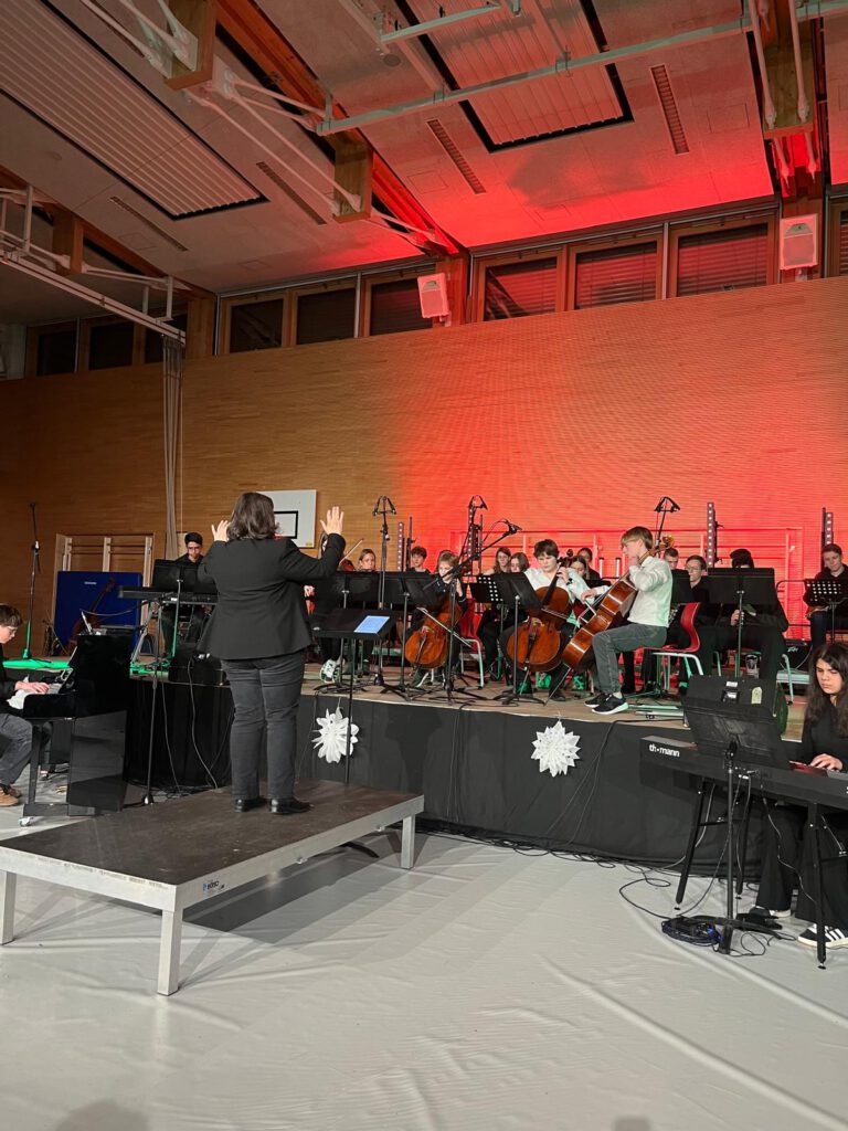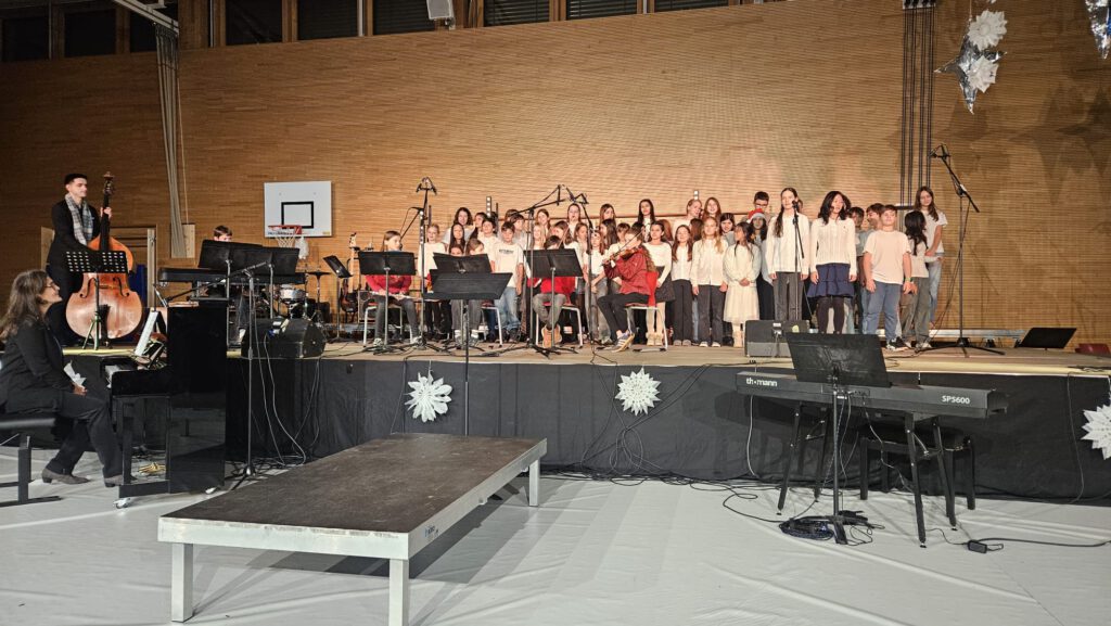 Wieder einmal verwandelte sich die E-Bau-Turnhalle in einen weihnachtlich geschmückten Konzertsaal. Am 2.12.25 um 17 Uhr stimmten die Musikensembles des EGG ein sehr zahlreich erschienenes Publikum auf die Adventszeit ein. „Musik im Advent“, von Herrn Steinhäuser in seiner Begrüßung als bereits feste und von vielen freudig erwartete Institution der Vorweihnachtszeit bezeichnet, begeisterte alle Anwesenden und bildetet den Auftakt zum diesjährigen Adventsbasar.