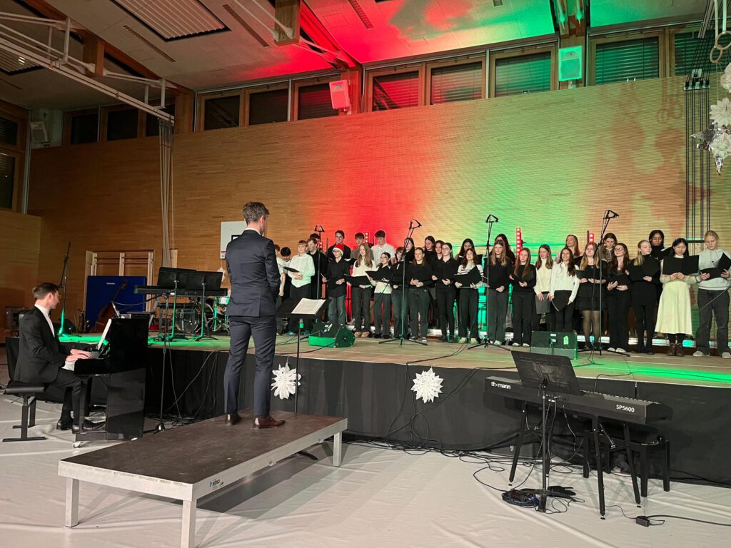 Alle Musikensembles der Schule traten auf und zeigten ein gut geprobtes und stimmungsvolles Programm. Vom Unterstufenchor Young Voices, dem Jungen Ensemble, dem Mittelstufenchor Voices und dem Oberstufenchor bis hin zu Orchester und Big Band überzeugten alle Musizierenden durch ihre begeisternde Darbietung. Sogar ein Lehrkräftechor und der Chor „HartGemischt“ von Frau Göldner präsentierte Besinnliches zur Adventszeit.