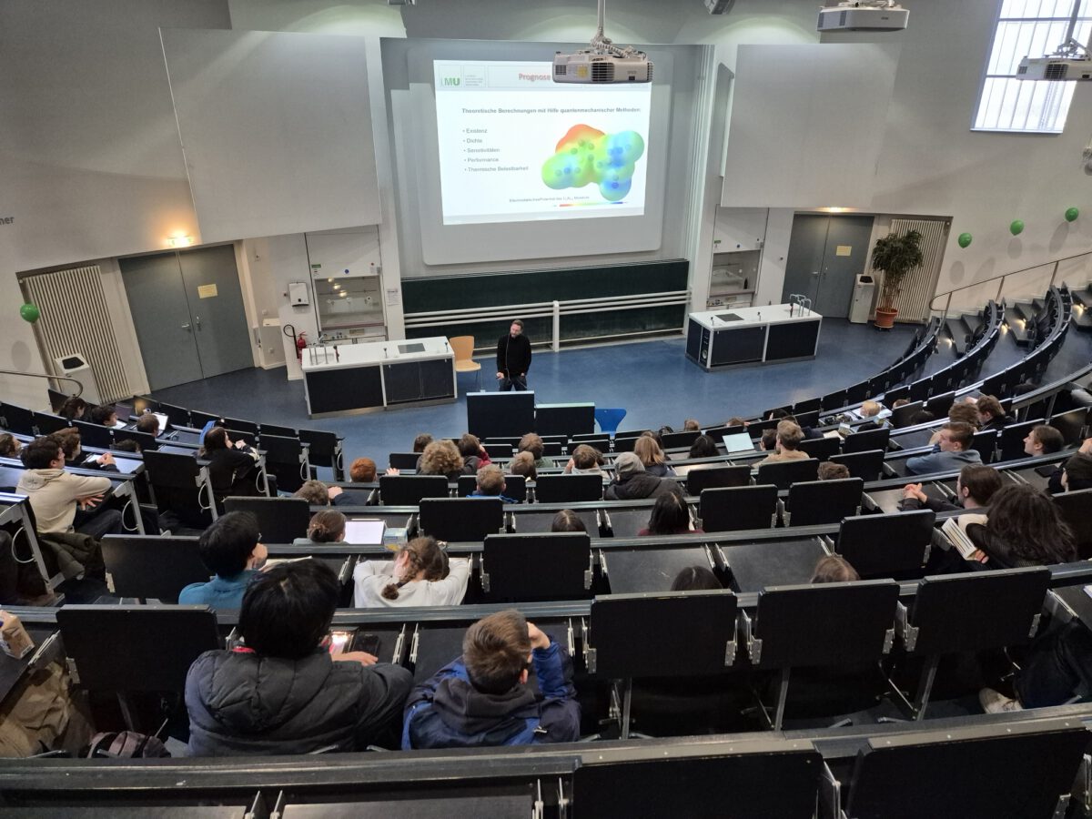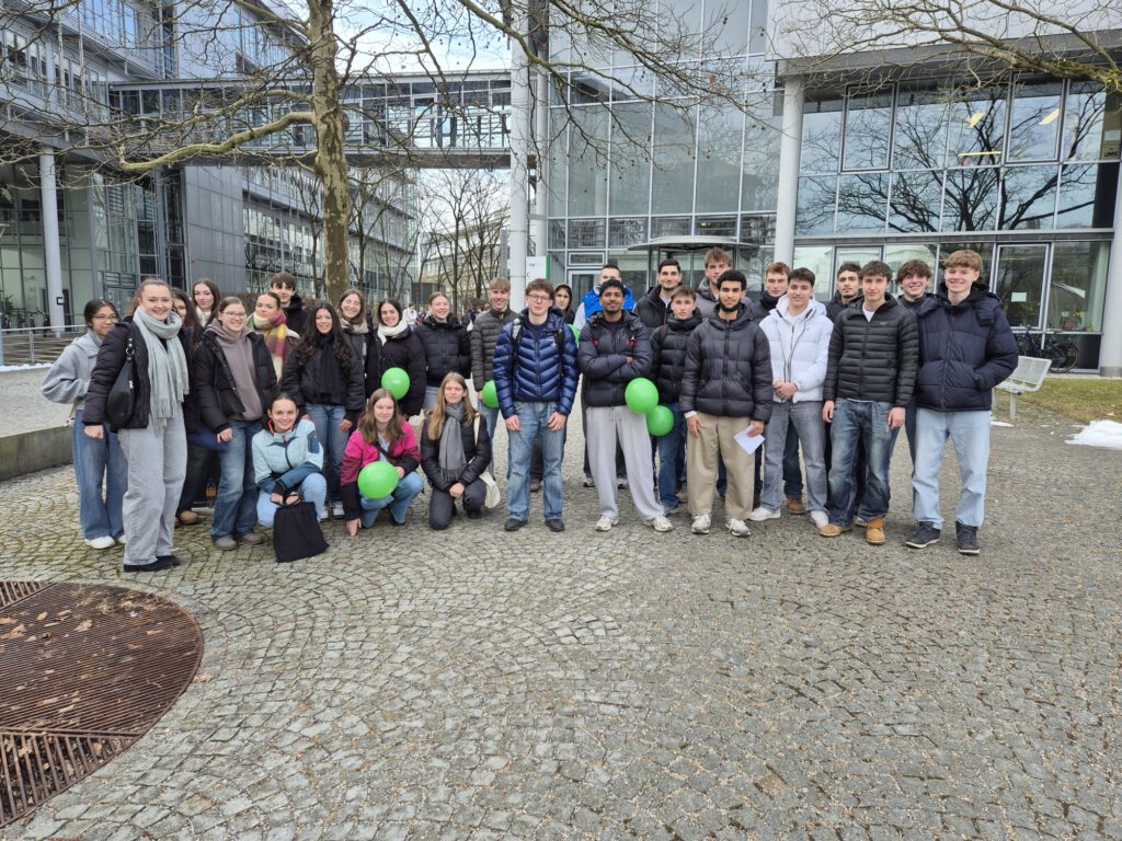 Am 6.02.2026 besuchten die beiden Chemie-Grundkurse sowie der Leistungskurs der Jahrgangsstufe 12 den Hochschul-Infotag der Fakultät für Chemie und Pharmazie an der LMU München. Treffpunkt war das Foyer vor den Hörsälen Liebig und Buchner, wo zahlreiche Arbeitsgruppen ihre Forschung an anschaulichen Ständen präsentierten und für Fragen zur Verfügung standen. So kamen unsere Schülerinnen und Schüler schnell mit Studierenden und Mitarbeitenden ins Gespräch, erfuhren von aktuellen Themen aus Labor und Forschung und gewannen einen Eindruck von der Vielfalt der Studien- und Berufsmöglichkeiten in Chemie und Pharmazie.