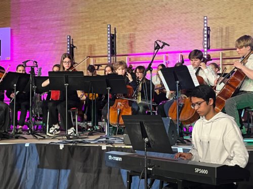 Ein zahlreich erschienenes Publikum lauschte der Vielfalt der Ensembles: dem Unterstufenchor Young Voices, dem Mittelstufenchor Voices, dem Oberstufenchor, dem Jungen Ensemble und dem Schulorchester sowie der Bigband.