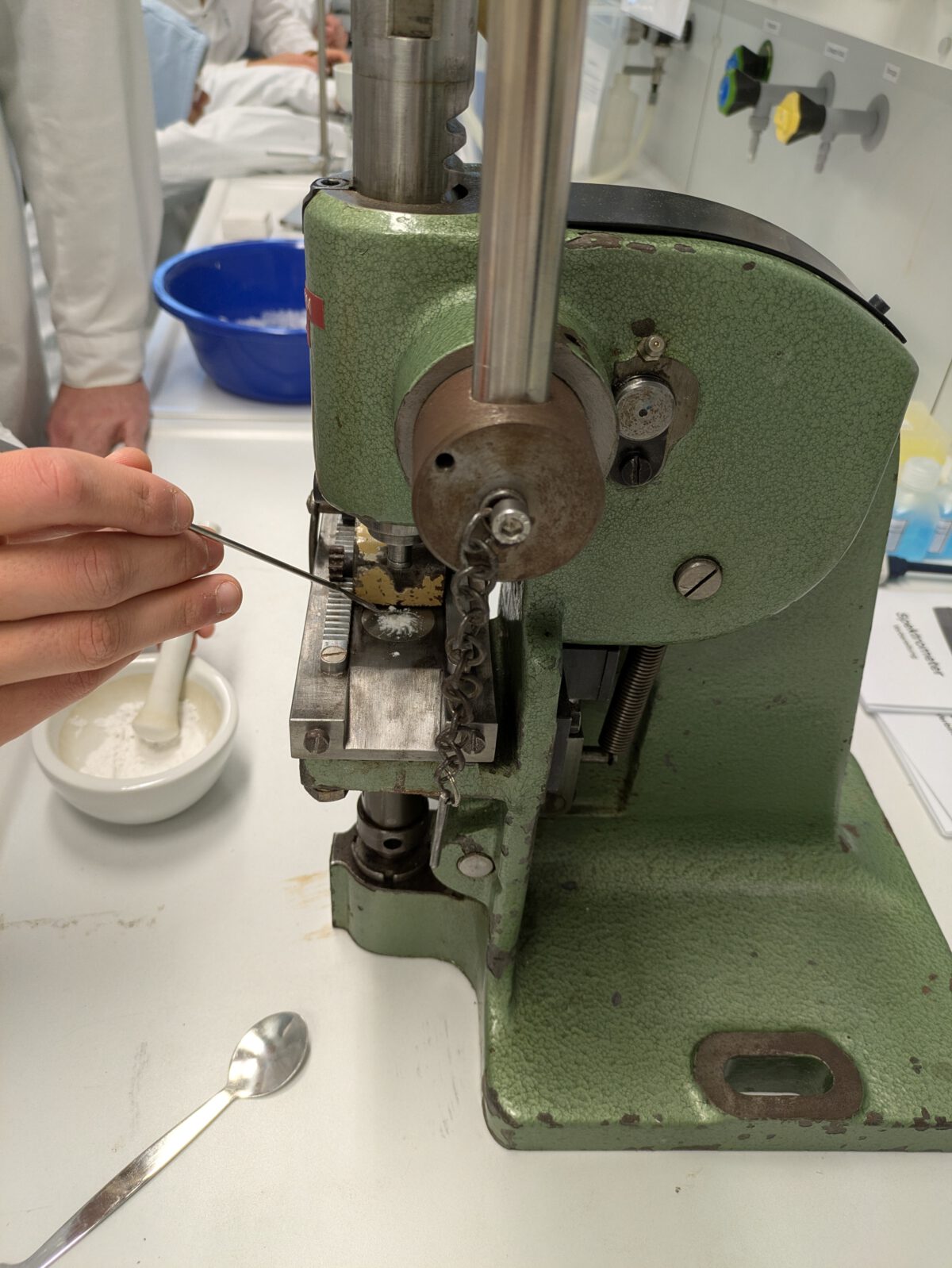 Am 20. November 2025 tauchten 14 Schülerinnen und Schüler des W-Seminars Biologie auf dem Campus der Chemie-Fakultät der LMU in Großhadern in die Welt der Pharmazie ein. Im Schülerlabor „Chemlab“ stellten die Jugendlichen unter fachkundiger Anleitung selbst Aspirintabletten her, extrahierten duftendes Pfefferminzöl und verglichen anschließend die Wirkungen beider Substanzen mithilfe einer Dünnschichtchromatographie. Dabei entwickelten sie eigene Kriterien, nach denen Arzneimittel sinnvoll bewertet werden können – ein praktischer Brückenschlag zum Seminarthema „Schülerwarentests“.