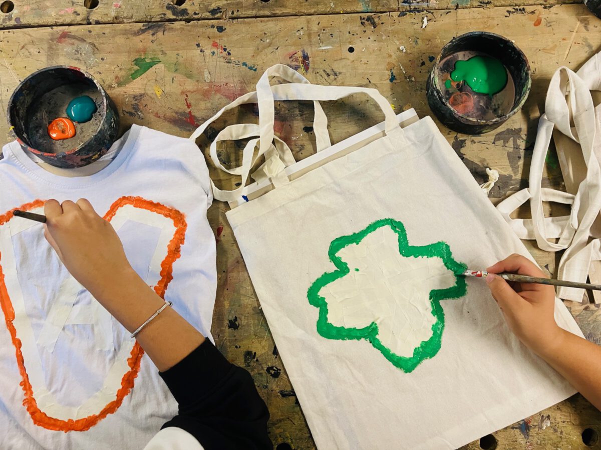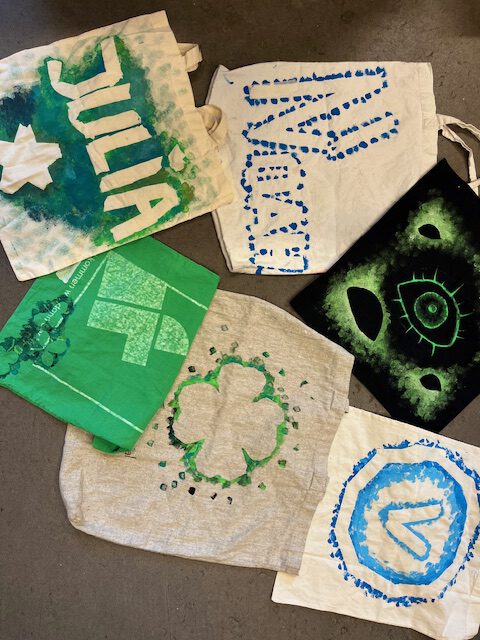 Als weiteres Beispiel zur Thematisierung der Abwägung zwischen verschiedenen Verhaltensoptionen ist das fächerintegrative Projekt der achten Jahrgangsstufe zu nennen, bei dem im Fachunterricht Kunst ein „Upcycling“ von vorhandenen Jutebeuteln durchgeführt wurde. Begleitet wurde dies von den Fachschaften Biologie und Chemie, die in diesem Zusammenhang auf Aspekte der Nachhaltigkeit und auf Kleidung eingingen.