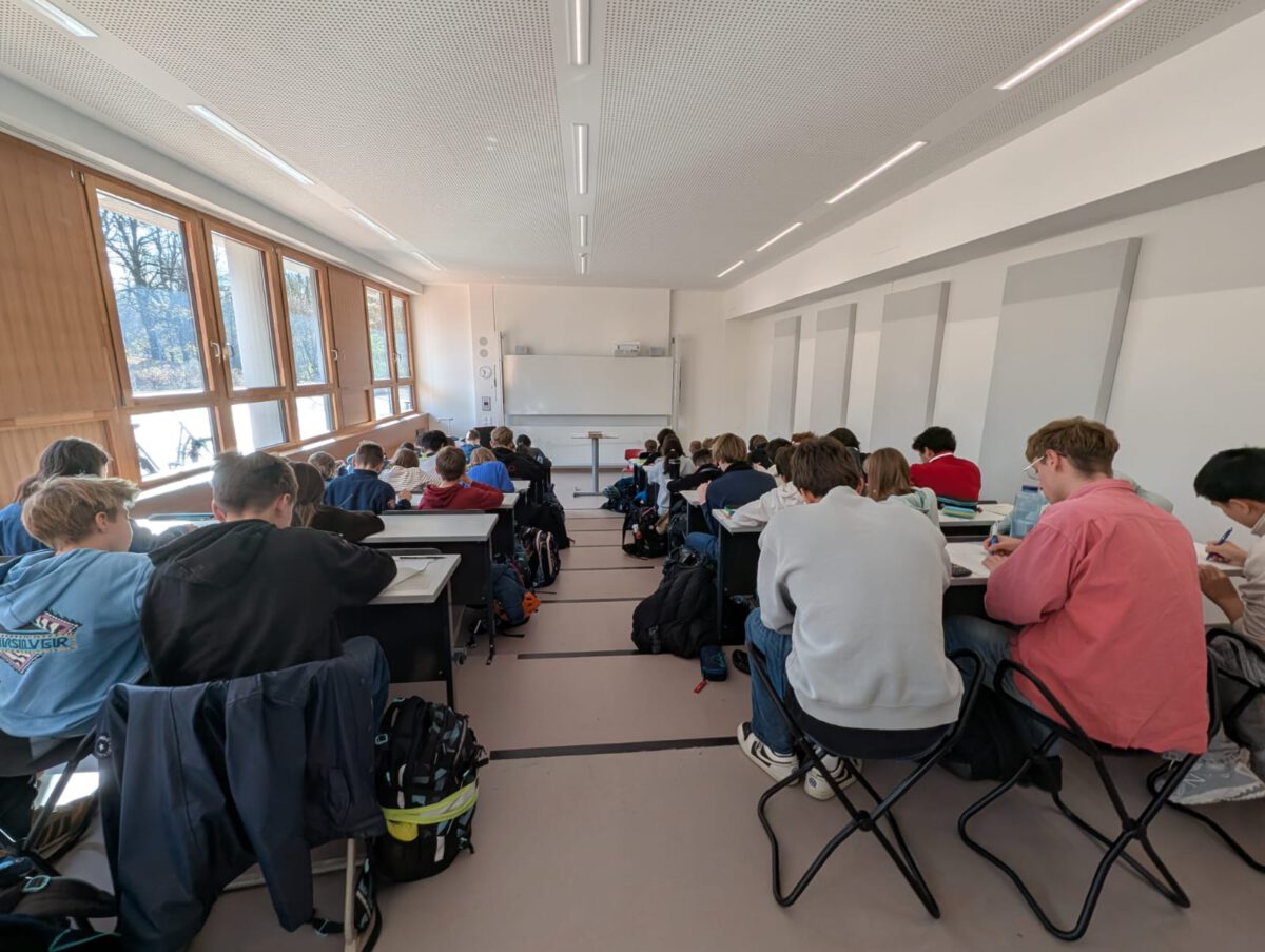 Am 12. November 2025 stand das EGG ganz im Zeichen der Mathematik: 58 Schülerinnen und Schüler aus den Jahrgangsstufen 5 bis 13 hatten sich erfolgreich durch die erste Runde der Mathematik-Olympiade Bayern (MoBy) geknobelt und traten nun zur zweiten Runde an. Unter der Organisation von Frau Petry verwandelten sich die Klassenräume für drei bzw. vier Stunden in stille Denkwerkstätten, in denen spannende Fragestellungen und knifflige Probleme auf kreative Lösungen warteten. Trotz konzentrierter Atmosphäre war die Freude am Tüfteln deutlich spürbar – viele nahmen die Herausforderung mit einem Lächeln und sichtbarer Begeisterung an.